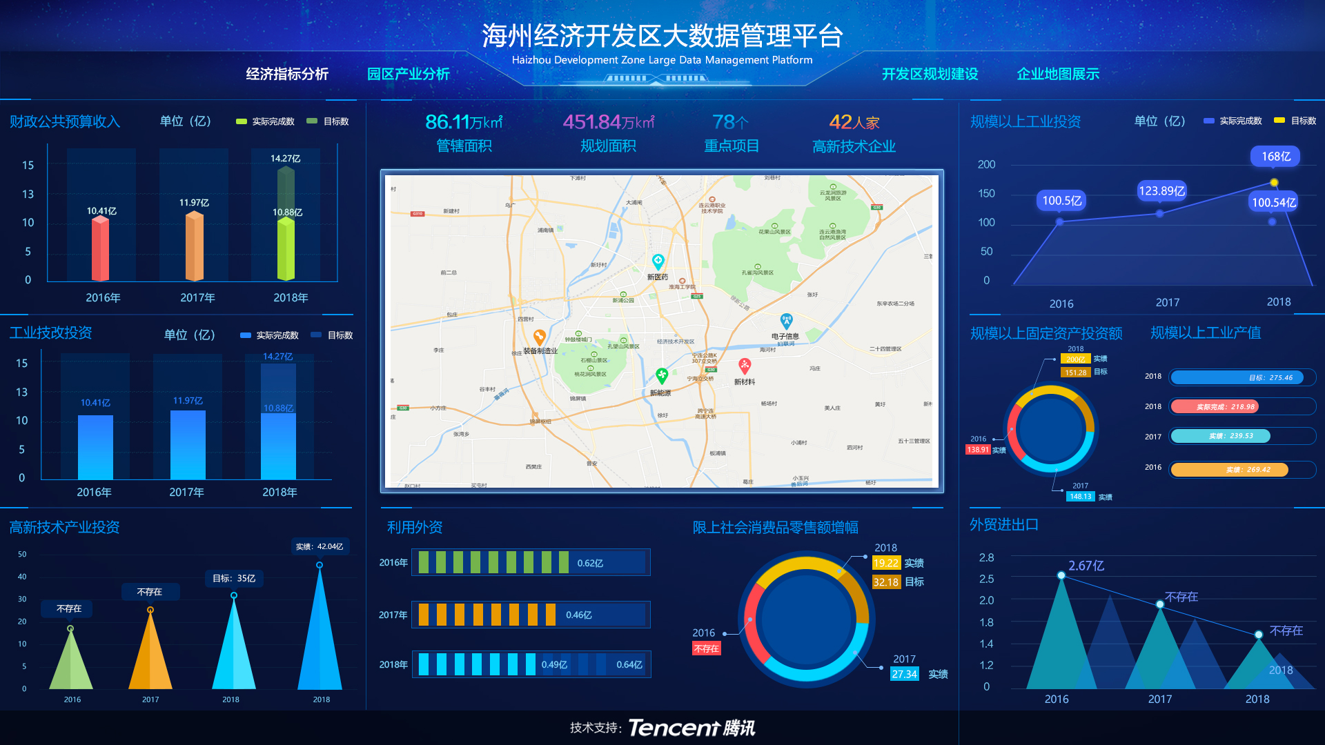 海州经济开发区大数据管理平台覆盖“一区四板块区”的智慧协同办公系统、行政审批系统、政务大数据平台、移动电子政务平台。