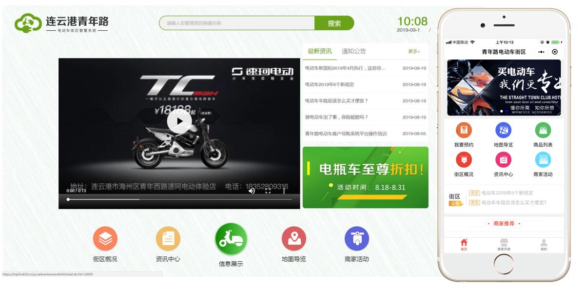 功能包含:商户展示、在线预约、商家活动、地图导览、街区手绘地图等。