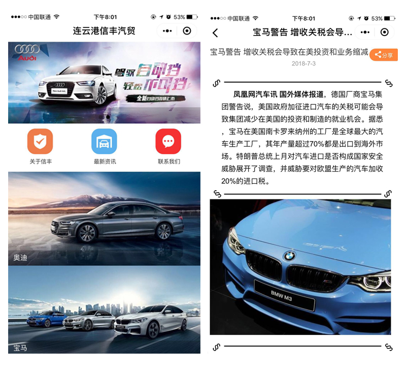 连云港信丰汽贸小程序平台建设