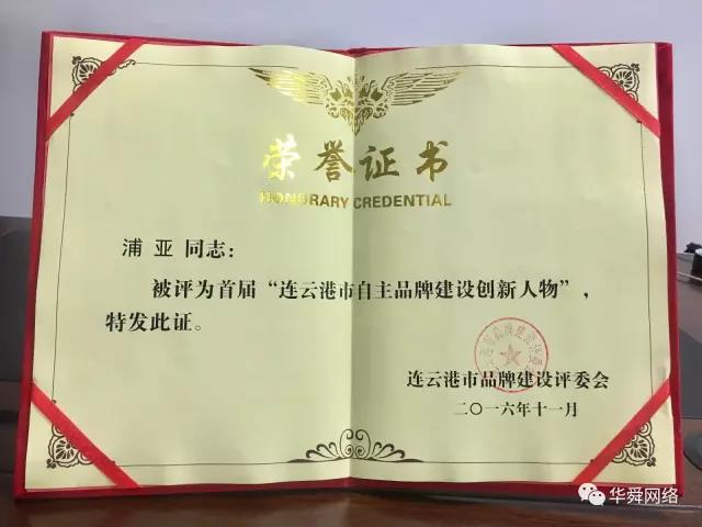 热烈祝贺华舜网络在“首届连云港市自主品牌”评选中