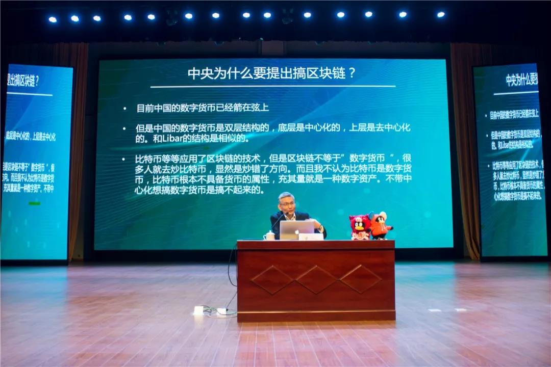 讲座伊始,黄教授以比特币的运行原理为切入点,引入区块链的概念和特点。随后分析了区块链未来的发展应用和所带来的技术变革,并围绕区块链如何与区域经济发展相结合这一问题进行了深入的探讨。