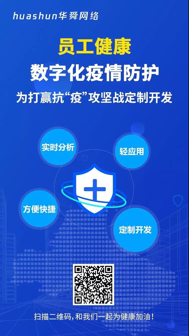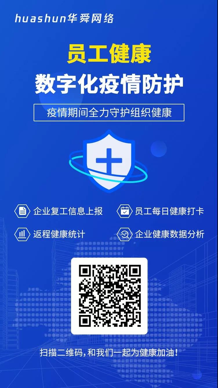 日前,由华舜网络打造的员工健康数字化疫情防护系统在微信应用上线运行。员工健康数字化疫情防护系统提供企业复工信息上报、员工每日健康打卡、返程健康统计、企业健康数据分析等功能,帮助政府、企业随时了解企业及员工健康状态,实时预警,实时分析,为企业抗击疫情扩散争取宝贵时间。