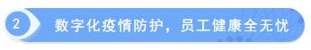 通过员工健康数字化疫情防护系统,可以进行企业复工信息上报、员工每日健康打卡、返程健康统计、企业健康数据分析等功能,帮助政府、企业随时了解企业及员工健康状态。